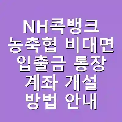NH콕뱅크 비대면 입출금 통장 가입은 조건을 충족하면 쉽고 간편하게 가능합니다. 준조합원 가입을 통해 세금 혜택도 누릴 수 있으며, 온라인 계좌 개설로 편리한 금융 거래가 가능합니다. 필요한 서류와 절차를 충분히 이해하고 진행하는 것이 중요합니다.