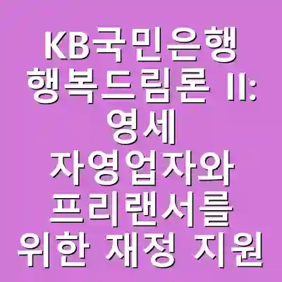 KB국민은행의 행복드림론 II는 영세 자영업자와 프리랜서에게 큰 도움이 되는 금융 상품입니다. 저렴한 금리와 유연한 상환 조건 덕분에 자영업자들이 안정적인 재정 관리를 할 수 있도록 지원합니다. 이 상품을 통해 재정적 어려움을 극복하고 사업을 더욱 확장할 수 있는 기회를 가지시길 바랍니다.