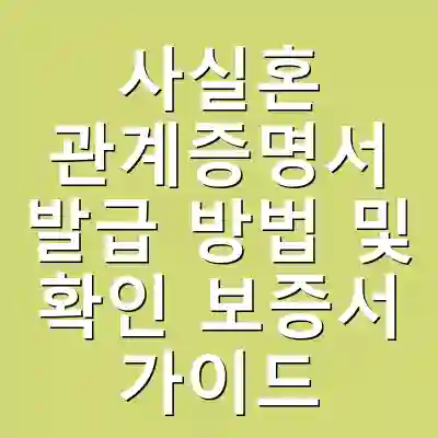 최근 사회에서 다양한 가족 형태가 등장하면서 ‘사실혼’에 대한 관심이 증가하고 있습니다. 사실혼은 법적 혼인신고 없이도 부부처럼 살아가는 관계를 의미합니다. 하지만 법적 보호를 받지 못하는 이 관계에서 발생할 수 있는 분쟁을 예방하기 위해서는 사실혼 관계증명서 발급이 필수적입니다. 이 글을 통해 사실혼 관계증명서 발급 방법과 확인 보증서 발급 가이드를 알아보겠습니다. 또한 이 정보는 안전하게 이혼 절차를 진행하는 데 도움이 될 것입니다.