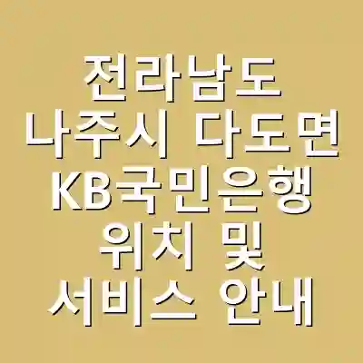 전라남도 나주시 다도면의 KB국민은행은 다양한 금융 서비스를 제공하며, 고객의 편의를 최우선으로 생각합니다. 이번 글에서는 은행 위치, 영업시간, 고객센터 전화번호, ATM 위치에 대한 정보를 상세히 안내드렸습니다. 이러한 정보를 바탕으로 보다 효율적인 금융 거래를 진행하시기 바랍니다.