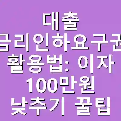 대출을 받은 후 신용 상태가 개선되었을 때, 대출 금리를 인하할 수 있는 ‘금리인하요구권’을 알고 계신가요? 이 권리는 많은 사람들이 간과하고 있지만, 사실은 법적으로 보장된 권리입니다. 이를 통해 연간 최대 100만원의 이자를 절약할 수 있는 기회를 제공합니다. 이 글에서는 금리인하요구권의 정의와 신청 요건, 절차, 그리고 그를 통해 이자를 줄이는 방법에 대해 자세히 알아보겠습니다. 이 글을 읽고 나면, 효과적으로 대출 이자를 절감하는 방법과 신청 시 유의해야할 점을 확실히 알 수 있습니다.