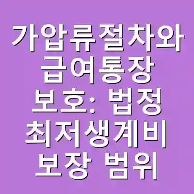 가압류절차와 급여통장 보호는 현대 사회에서 중요한 법적 문제로 자리 잡고 있습니다. 이 글을 통해 가압류 시 법정 최저생계비의 중요성과 그 보호 범위에 대해 이해할 수 있었기를 바랍니다. 채무 문제로 어려움을 겪고 있다면, 꼭 법률 전문가와 상담하여 보다 나은 재정적 선택을 할 수 있도록 하세요.