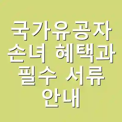 국가유공자 손녀 혜택은 교육비 지원, 의료비 경감, 생활 안정 지원으로 나뉘며, 국가유공자증이 필수 서류입니다. 발급 절차와 유의사항을 충분히 숙지한 후 신청하면 다양한 혜택을 누릴 수 있습니다. 정확한 정보와 철저한 준비가 필요합니다.