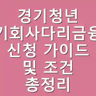 경기청년 기회사다리금융 신청 가이드 및 조건 총정리
