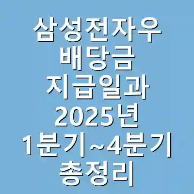 삼성전자와 삼성전자우의 배당금 지급일은 매년 정해진 일정에 따라 결정됩니다. 2025년도에는 1분기부터 4분기까지 각각 배당금이 지급될 예정으로, 배당 기준일과 배당락일이 따로 설정됩니다. 예를 들어, 2025년 1분기의 배당 기준일은 특정 날짜로 정해질 것이며, 그 날짜 이전에 주식을 보유한 주주에게 배당이 지급됩니다. 배당금 규모는 분기별로 다를 수 있지만, 주주들은 이를 통해 안정적인 수익을 기대할 수 있습니다.