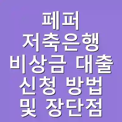 페퍼 저축은행 비상금 대출은 간편한 신청 절차와 낮은 이자율이 장점인 소액 대출 상품입니다. 대출 신청 시 신용 점수와 부채를 고려하는 것이 중요하며, 대안 상품도 활용할 수 있습니다. 자신의 필요에 맞는 최적의 대출 상품을 선택하는 것이 중요합니다.