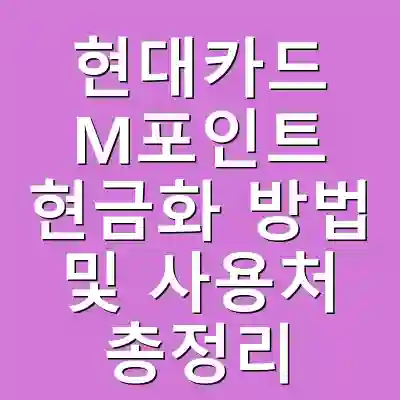 현대카드 M포인트는 카드 사용 시 적립되는 유용한 포인트입니다. 본 글에서는 M포인트의 확인 방법, 현금화 절차, 그리고 다양한 사용처를 소개하였습니다. 이를 통해 독자들은 M포인트를 보다 효율적으로 활용할 수 있는 방법에 대해 이해할 수 있습니다.