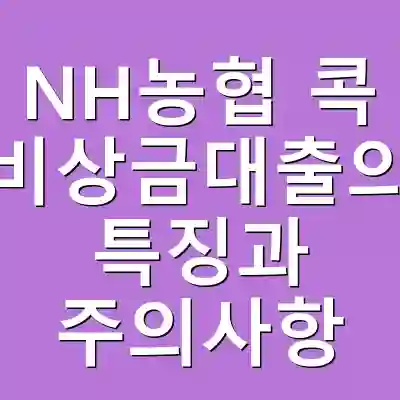 NH농협 콕 비상금대출은 소액 대출이 필요한 분들에게 매우 유용한 금융 상품입니다. 특히 신용도가 낮거나 소득이 불안정한 분들에게도 적합하여 경제적 압박을 덜어줄 수 있습니다. 그러나 이 상품에는 몇 가지 주의사항이 존재합니다. 이 글에서는 콕 비상금대출의 특징과 신청 시 유의해야 할 점들을 살펴보며, 이를 통해 더 나은 대출 경험을 얻을 수 있도록 돕겠습니다.