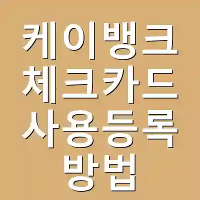 케이뱅크 체크카드 사용등록 방법을 통해 간편하게 체크카드를 활용할 수 있습니다. 본인 인증 및 카드 등록 과정을 거쳐 다양한 혜택을 누릴 수 있으니, 이 글에서 제공한 정보를 적극 활용해 보시기 바랍니다. 체크카드를 통해 금융 생활이 더욱 풍요로워지기를 바랍니다.