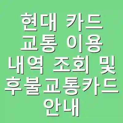 현대 카드를 이용하여 교통 요금을 결제하는 과정에서, 사용자는 카드의 교통 이용 내역을 손쉽게 조회할 수 있습니다. 이는 사용자에게 투명한 소비 패턴을 제공하며, 후불교통카드의 기능도 함께 활용됩니다. 후불교통카드는 미리 충전하지 않고도 대중교통을 이용할 수 있는 편리함을 제공합니다. 이 글에서는 현대 카드의 교통 이용 내역 조회 및 후불교통카드 사용법에 대한 전문가적인 정보를 제공합니다. 이 글을 통해 독자들은 교통비 관리와 영수증 조회 방법에 대한 실질적인 지식을 얻게 될 것입니다.