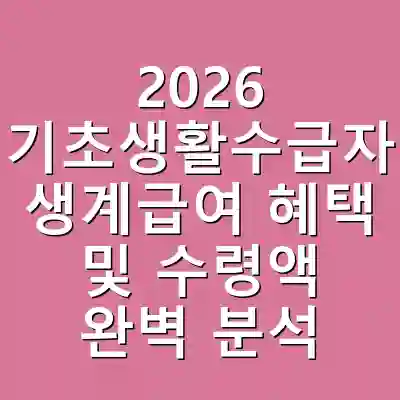 2026년 기초생활수급자 생계급여는 기준 중위소득의 32% 이하 가구에 지원됩니다. 생계급여 수령액은 1인 가구 최대 820,556원에서 4인 가구 최대 2,078,316원까지 인상됩니다. 신청 시 정확한 소득과 재산 신고가 필수적이며, 다양한 추가 혜택이 제공되어 경제적 안정을 도모할 수 있습니다.