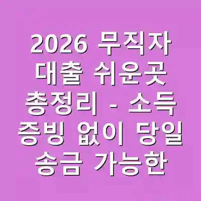 무직자 대출은 소득 증빙이 필요 없는 금융 상품으로, 긴급 생활비를 지원합니다. 2026년 현재, 다양한 금융기관에서 무직자를 위한 대출 상품을 제공하고 있습니다. 대출 신청은 간단하나, 상환 계획을 세우는 것이 중요합니다.