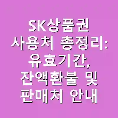 SK상품권의 사용처와 유효기간, 잔액환불 규정 및 판매처를 정리했습니다. 상품권을 구매하고 사용할 때, 관련 정보를 숙지하면 더 많은 혜택을 누릴 수 있습니다. 신뢰할 수 있는 경로에서 구매하고, 유효기간을 잘 관리하는 것이 중요합니다.
