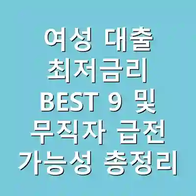 여성들이 대출을 이용하기 위해서는 적절한 상품 선택과 신용 점수 관리가 필수적입니다. 무직자라도 다양한 옵션이 존재하므로, 자신의 재정 상황에 맞는 최적의 대출 상품을 찾는 것이 중요합니다. 위의 정보를 바탕으로 신중하게 대출을 계획하시기 바랍니다.