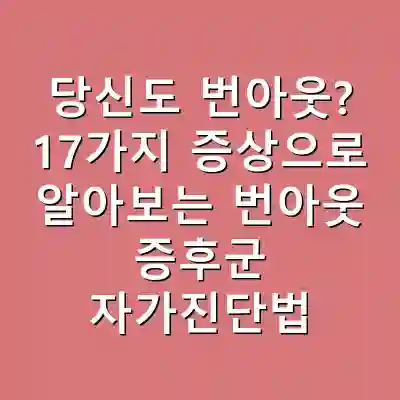 번아웃 증후군은 신체적, 정신적 피로가 복합적으로 나타나는 상태로, 조기 진단과 관리가 중요합니다. 17가지 증상 체크리스트를 통해 자신의 상태를 점검하고, 필요시 전문가의 도움을 받는 것이 바람직합니다. 자기 관리와 예방이 번아웃의 위험을 줄이는 핵심입니다.